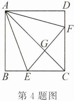4. 如图,在正方形ABCD中,已知点E,F分别在BC,CD上,$ △AEF $是等边三角形,连接AC交EF于G,给出下列结论:①$ BE = DF $;②$ ∠DAF = 15 ^ { \circ } $;③AC垂直平分EF;④$ BE + DF = EF $.结论正确的有____.(只填序号)
