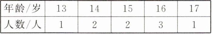 - 然后将年龄从小到大排列:$13$,$14$,$14$,$15$,$15$,$16$,$16$,$16$,$17$。