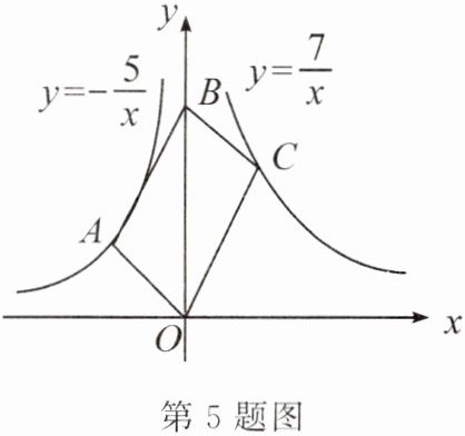5. 如图,平行四边形OABC的顶点O,B在y轴上,顶点A在反比例函数$y= -\frac {5}{x}$上,顶点C在反比例函数$y= \frac {7}{x}$上,则平行四边形OABC的面积是 ()