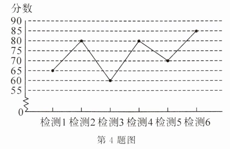 4. 如图是小敏同学6次数学检测的成绩统计图,则小敏同学6次成绩的中位数是 ()
