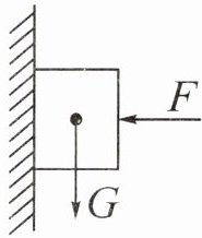 4. 如图所示,物体重 $ G = 10 \, \text{N} $, 作用在物体的上力 $ F = 40 \, \text{N} $, 且 $ F $ 与墙壁垂直,这时墙壁受到的压力大小是()