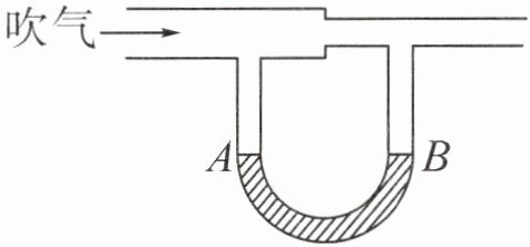 2. 如图所示,将一根玻璃管制成粗细不同的两段,管的下方与一个装有部分水的连通器相通。当从管的一端吹气时,连通器两端$A$、$B$液面的高度变化情况正确的是()