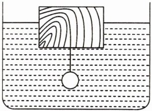 4. 如图,在木块下面用细线悬挂一个实心铁球,木块仍浮在水面上。下列各种说法中正确的是()