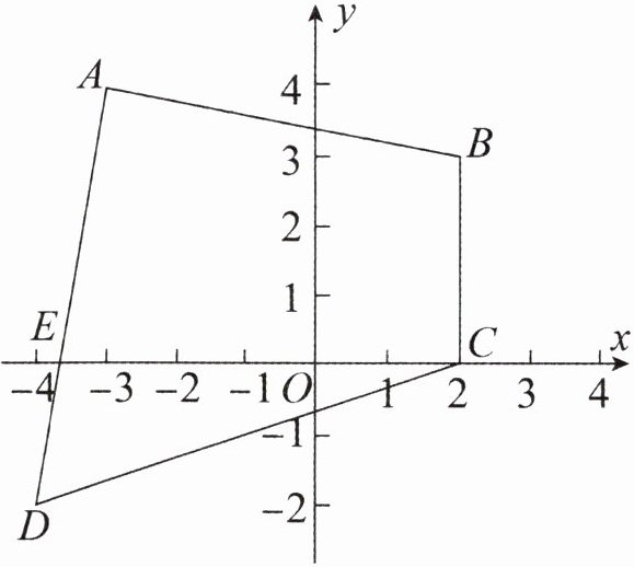 18. 如图,在平面直角坐标系中,四边形$ABCD各顶点的坐标分别是A(-3,4)$,$B(2,3)$,$C(2,0)$,$D(-4,-2)$,且$AD与x轴交点E的坐标为(-\dfrac{11}{3},0)$,求这个四边形的面积.(提示:分别过点$A$,$D向x$轴作垂线)