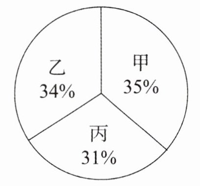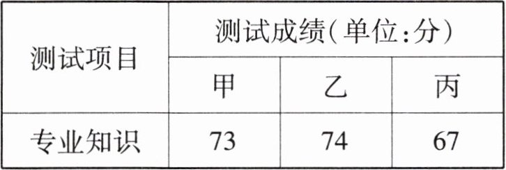 19. 某企业人事部欲从内部招聘管理人员一名,对甲、乙、丙三名候选人进行专业知识测试,成绩如下表所示,并依录用的程序,组织200名职工对三人进行民主评议投票推荐,三人得票率如图所示.(没有弃权票,每位职工只能投一票,每得一票记作1分)