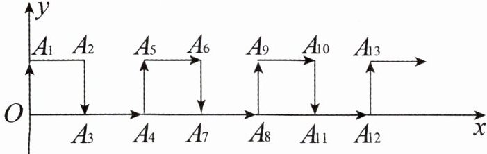 12. 如图,在平面直角坐标系中,一动点$O$从原点出发,按向上、向右、向下、向右的方向依次平移,每次平移$1$个单位,得到点$A_{1}(0,1),A_{2}(1,1),A_{3}(1,0),A_{4}(2,0)…$,那么$A_{2017}$的坐标是______。