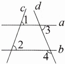 11. 直线$a,b,c,d$的位置如图所示,如果$\angle 1= 58^{\circ},\angle 2= 58^{\circ},\angle 3= 70^{\circ}$,那么$\angle 4$等于______。