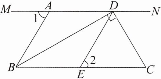 ∴∠NDE + ∠2 = 180°,∠ABC = ∠1 = 60°,