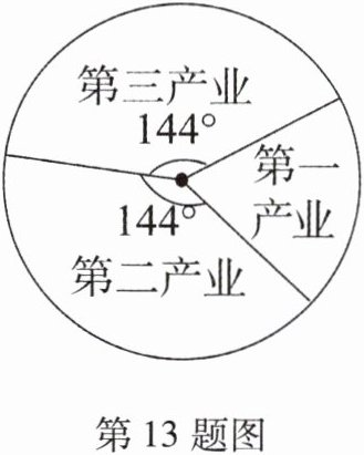13. 根据预测,将21世纪中叶我国劳动者构成比例绘制成扇形统计图,如图所示,则第一、二、三产业劳动者的构成比例是______.