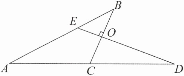 14. 如图,$BC⊥ED$,垂足为 O,$∠A= 27^{\circ },∠D= 20^{\circ }$,求$∠ACB与∠B$的度数.