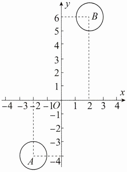 $\odot A$是$\odot B$向左平移4个单位长度,再向下平移10个单位长度得到的. 点B的横坐标减4,纵坐标减10得到点A的坐标.