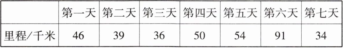 (1) $\frac{46 + 39 + 36 + 50 + 54 + 91 + 34}{7}×30 = 1500$(千米)。