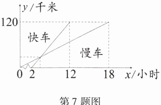 7. 一慢车和一快车沿相同路线从 A 地到相距 120 千米的 B 地,所行的路程与时间的函数图象如图所示. 试根据图象回答下列问题: