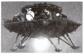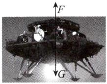 1. “祝融号”火星车在火星预定着陆区软着陆前,为避免着陆器与火星猛烈碰撞,在着陆器距离火星表面附近时向下喷气反推使其悬停(如图所示),请作出此时着陆器受到的重力 G 和喷气对它的推力 F 的示意图。