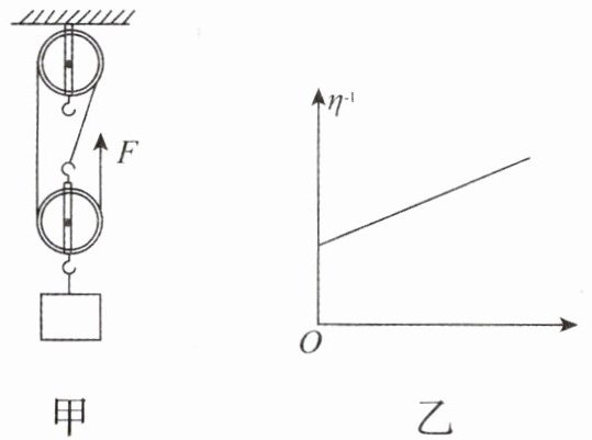(2) 小华利用图甲滑轮组,只改变物重进行了多次实验(忽略绳重和摩擦),作出了如图乙所示的图像,已知该图像的纵坐标表示滑轮组机械效率的倒数,则该图像的横坐标所表示的物理量是