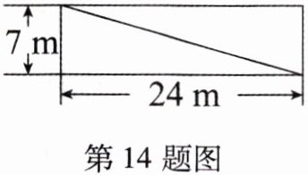 17. 一只喜鹊正在一棵高$3m$的小树的树梢上觅食,它的巢筑在距离该树$24m且高为14m$的一棵大树上,巢距离大树顶部$1m$,这时,它听到巢中幼鸟求助的叫声,便立即赶过去。如果它飞行的速度为$5m/s$,那么它至少需要几秒才能赶回巢中?