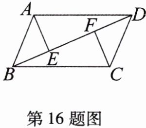 16. 如图,在$□ ABCD$中,点E,F在对角线BD上,且$BE= DF$,求证:$AE= CF$.