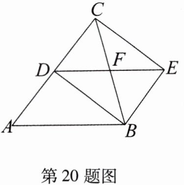 20. 如图,在$\triangle ABC$中,$AB= BC,BD平分∠ABC$,四边形ABED是平行四边形,DE交BC于点F,连接CE.求证:四边形BECD是矩形.