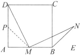 取 $ AD $ 的中点 $ P $,连接 $ PM $。$ \because M $ 为 $ AB $ 的中点,且四边形 $ ABCD $ 是正方形,