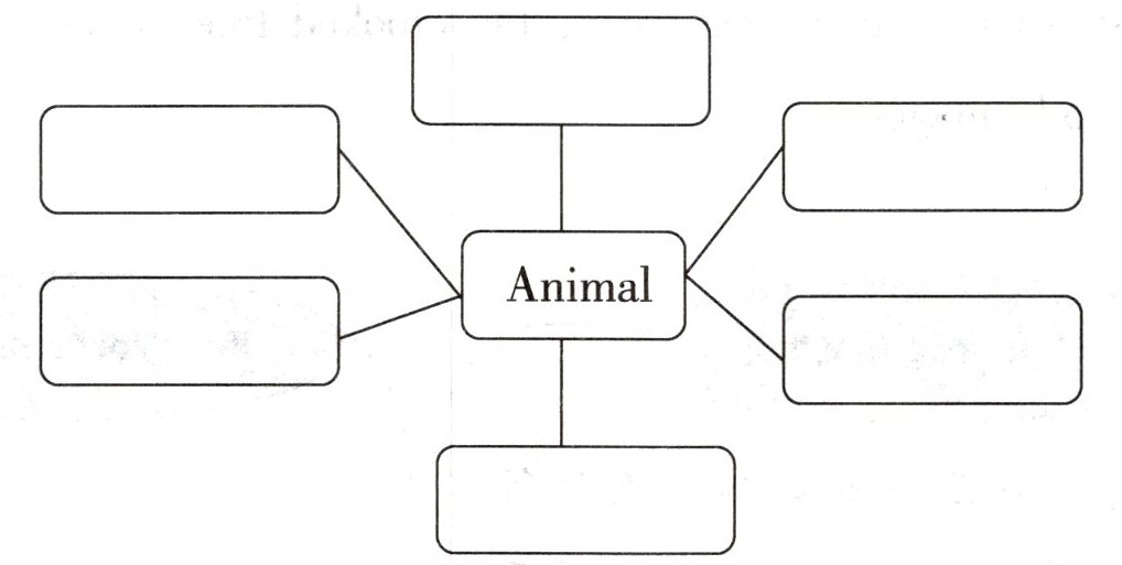 一、同学们,让我们来玩一玩“英语单词联想记忆”的游戏吧!请在下面的方框中写出你知道的与“Animal(动物)”相关的英语单词。