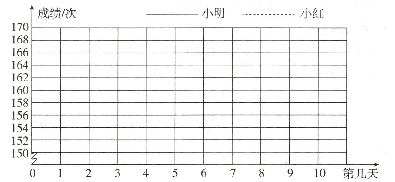 三、小明和小红为了参加学校运动会1分钟跳绳比赛,提前10天进行训练,每天测试成绩如下(单位:次)。