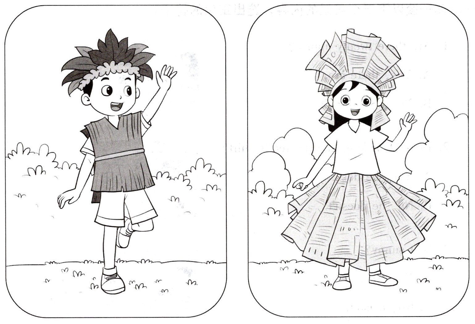 三、根据提示信息,给对应人物的服装涂上相应的颜色。