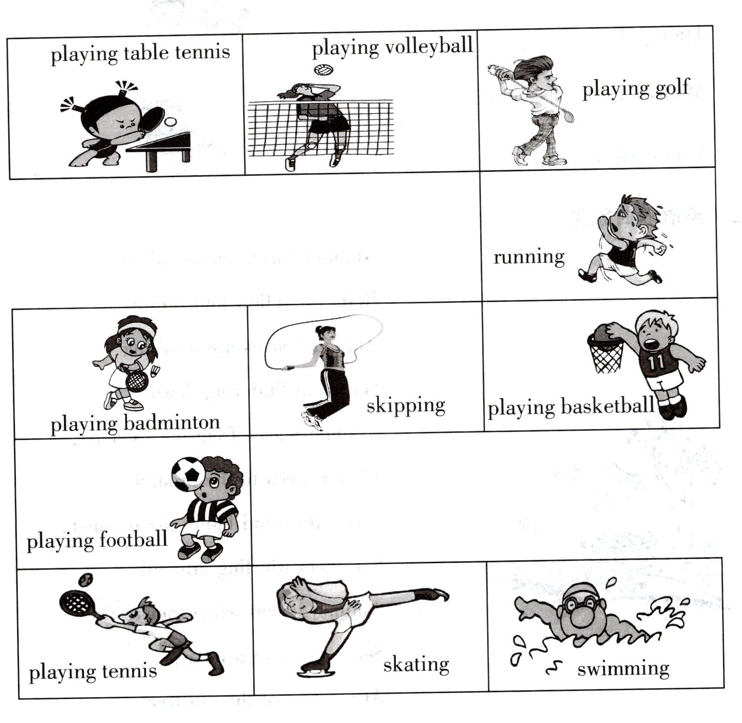 同学们,你们喜爱运动吗?你们一定学过很多关于运动的英语单词和词组,你可以邀请你的小伙伴们一起来玩下面的闯关游戏,看看谁能说出更多的单词或词组。你们知道它们的中文意思吗?