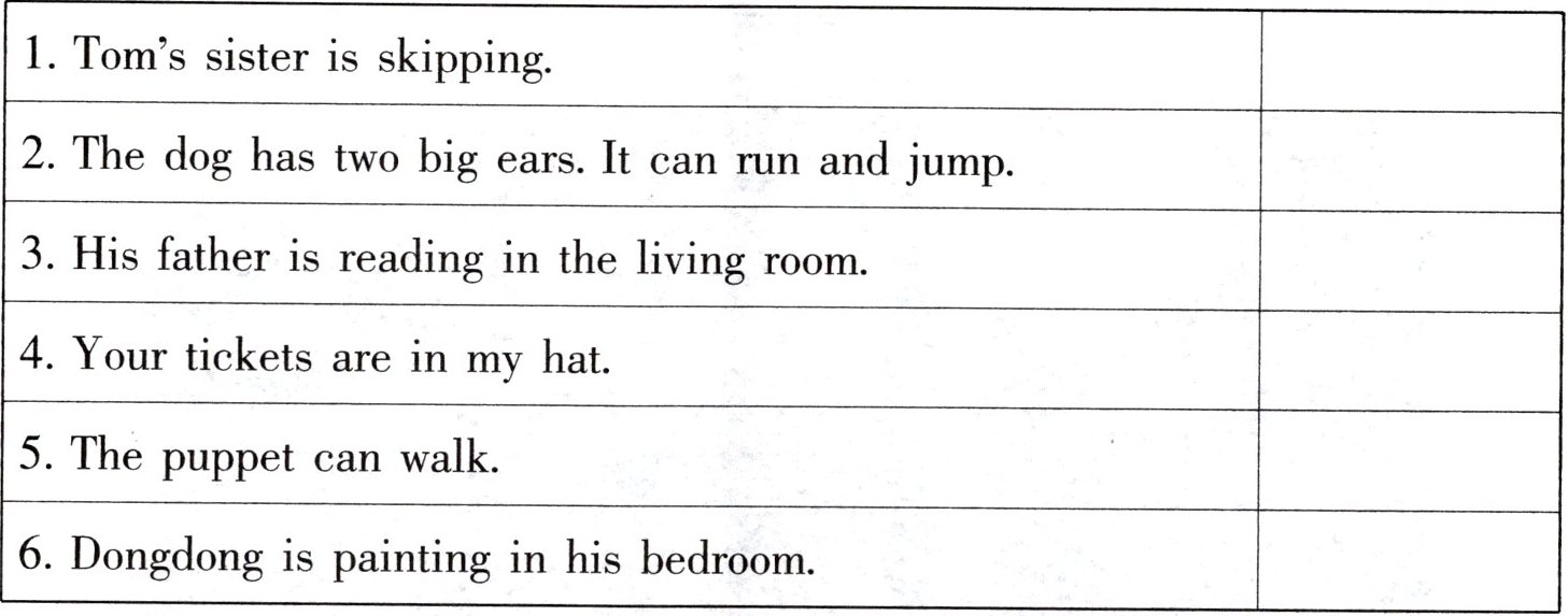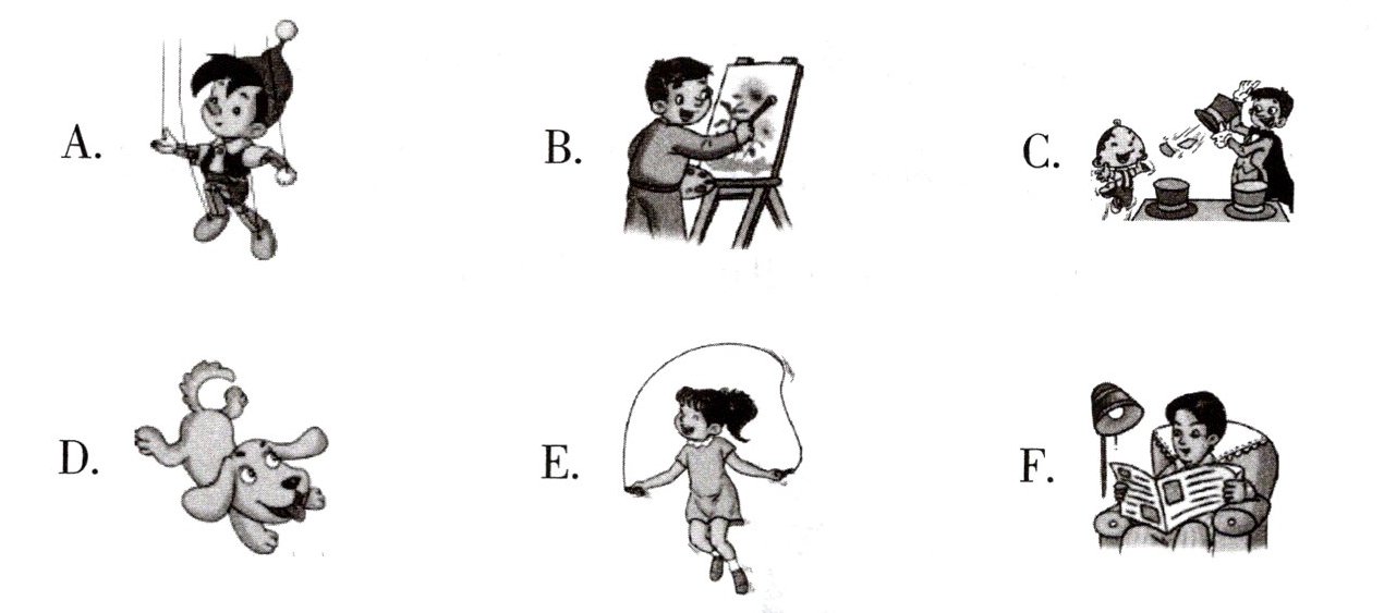 三、图文匹配。请选择与句意相符的图片,将其字母序号填到所对应的句子
