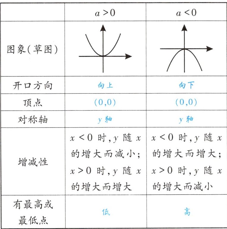 1. 抛物线$y = ax^2(a \neq 0)$的性质