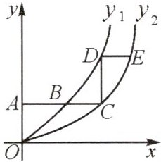 如图,平行于$x$轴的直线$AC$分别交函数$y_1=x^2(x\geq0)$与$y_2=\frac{x^2}{3}(x\geq0)$的图象于$B$,$C$两点,过点$C$作$y$轴的平行线交$y_1$的图象于点$D$,直线$DE// AC$,交$y_2$的图象于点$E$,则$\frac{DE}{AB}=$