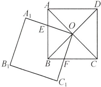 (1)无论正方形A₁B₁C₁O绕点O怎样旋转,两个正方形重叠部分的面积总等于一个正方形面积的$\frac{1}{4}$.想一想,这是为什么?
