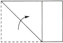 1. 折纸步骤:将长方形纸片的短边与长边对齐折叠,使短边的一个端点落在长边上,此时重叠部分为一个正方形。