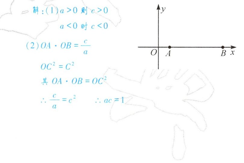 (2)如果线段OC的长度是线段OA,OB长度的比例中项,试证明a,c互为倒数.