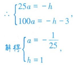 ∴$\begin{cases}25a=-h\\100a=-h-3\end{cases},$解得$\begin{cases}a=-\dfrac{1}{25}\\h=1\end{cases}$