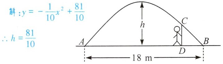 解$:y=-\dfrac{1}{10}x²+\dfrac{81}{10}$∴$h=\dfrac{81}{10}$