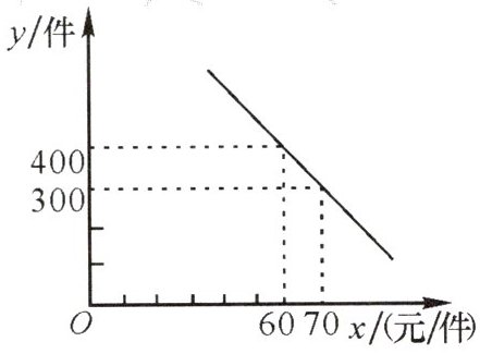 由图象知,当$x = 60$时,$y = 400$;当$x = 70$时,$y = 300$,代入函数关系式得: