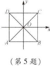 5. 如图,在平面直角坐标系中,正方形ABCD的对角线交点是原点O,两组对边分别与x轴、y轴平行.若正方形的对角线长为2$\sqrt{2}$,求正方形各顶点的坐标.
