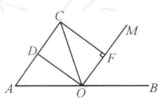 例4 如图,在△AOC中,OA=OC,点B是AO延长线上一点,OD平分∠AOC交AC于点D,OM平分∠COB,CF⊥OM于点F.