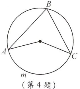 4. 如图,在⊙O 中,已知$\overset{\frown}{AB}=\overset{\frown}{BC}$,且$\overset{\frown}{AB}$:$\overset{\frown}{AmC}$=3:4,则∠AOC =