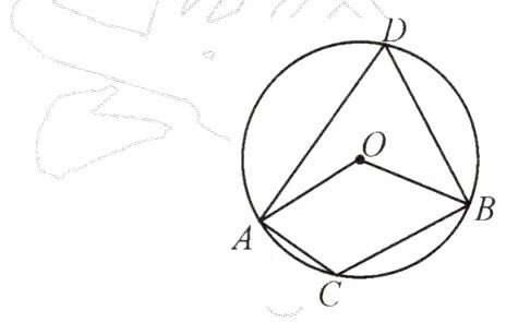 例1 如图,已知圆心角∠AOB=100°,求圆周角∠ACB,∠ADB的度数.