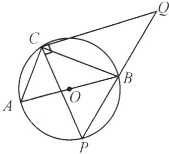 8. 如图,在⊙O上有定点C和动点P,它们位于直径AB的异侧,过点C作CP的垂线,与PB的延长线交于点Q. 已知⊙O的半径为$\frac{5}{2},tan∠ABC=\frac{3}{4},$则CQ的最大值是$