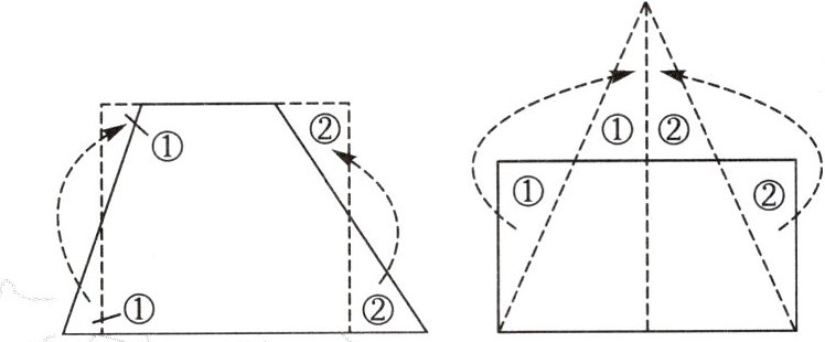 一个梯形可以剪开拼成一个矩形,一个矩形可以剪开拼成一个三角形.