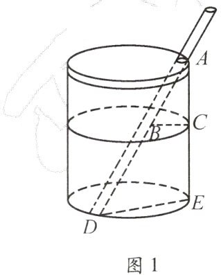 解:由题意得,BC//DE,∴$\frac{BD}{AD}=\frac{CE}{AE},$∴$\frac{1}{1.5}=\frac{CE}{1.2},$解得:CE=0.8,∴桶内所装液体的体积$=π(\frac{1}{2})²×0.8=\frac{1}{5}π($立方米).