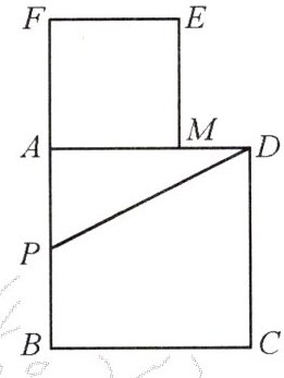,以长为2的线段AB为边作正方形ABCD,取AB的中点P,连接PD,在BA的延长线上取一点F,使PF=PD,以AF为边作正方形AMEF,点M在AD上.