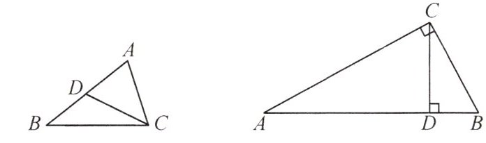 常用结论:$AC^2=AD\cdot AB$;$\frac{S_{\triangle ADC}}{S_{\triangle ACB}}=\left(\frac{AD}{AC}\right)^2$。