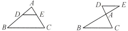 常用结论:$AD\cdot AC=AE\cdot AB$;$\frac{S_{\triangle ADE}}{S_{\triangle ABC}}=\left(\frac{AD}{AB}\right)^2$。