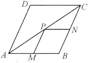 6. 如图,P是边长为1的菱形ABCD的对角线AC上一个动点,点M和N分别是AB,BC的中点,则MP+NP的最小值是
