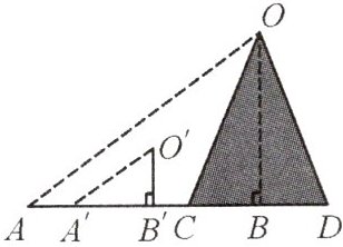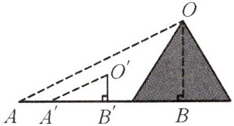 古代一位数学家想出了一种测量金字塔高度的方法.如图,为了测量金字塔的高度$OB$,先竖一根已知长度的木棒$O'B'$,比较棒子的影长$A'B'$与金字塔的影长$AB$,即可近似算出金字塔的高度$OB$.
