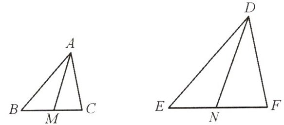 例1 如图,已知△ABC∽△DEF,AM,DN是对应中线.求证:$\frac{AM}{DN}=\frac{AB}{DE}$.