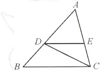 6. 如图,在△ABC中,已知DE//BC,若$S_{△ADE}:S_{△ABC}=4:9,$求$S_{△ADE}:S_{△CDE}.$